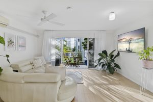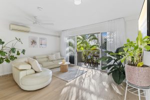 The apartment has an Easterly aspect with a private balcony overlooking lush gardens and the sparkling pool. The apartment also comes with air-conditioning and ceiling fans for year-round comfort.